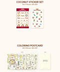 - Box - Tischkalender - Tagebuch mit Ledereinband - Fotokarten Kalender Set (12 Stk.) - Kokosnuss Sticker Set (2 Stk.) - Postkarten Set zum Ausmalen (8 Stk.) - Fotokarten Set (3 Stk.) - Stoff Tasche - Stimme Schlüsselanhänger